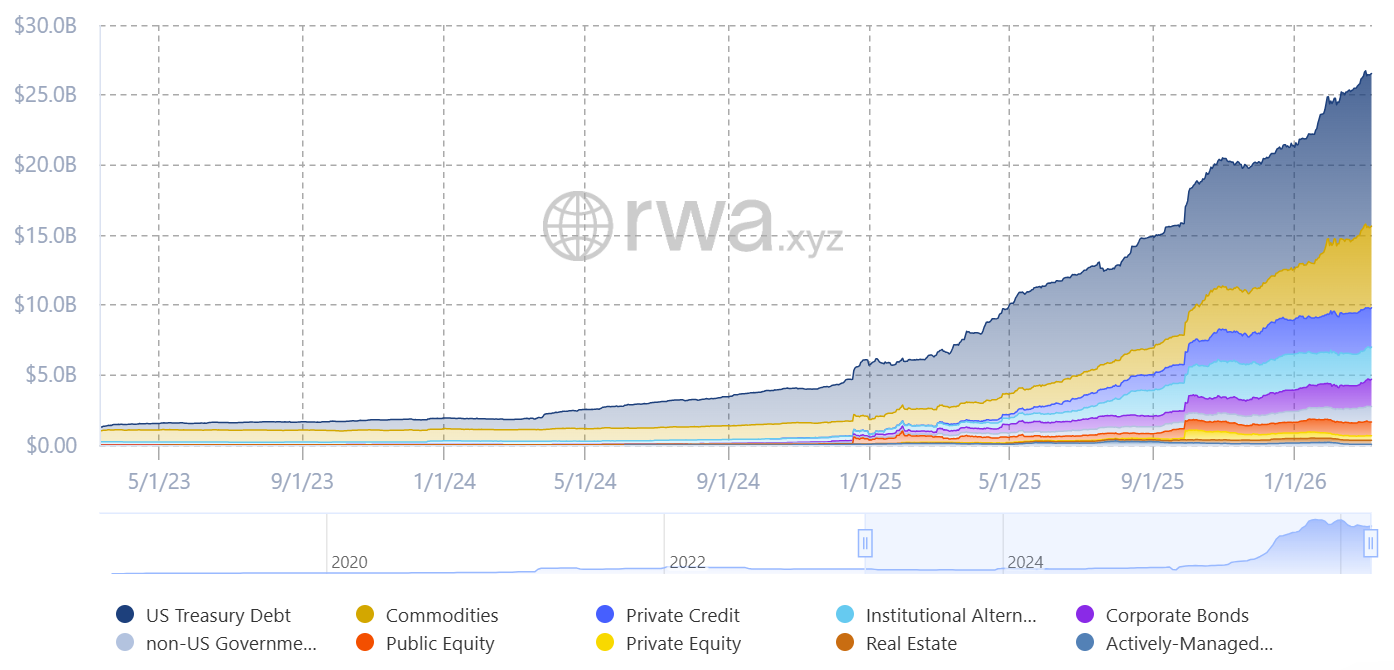The total value of tokenized real-world assets has reached $26.5 billion. Source: RWA.xyz