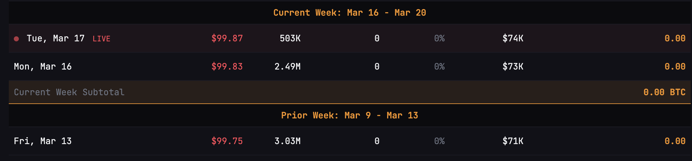 Previous STRC dips below $100 have coincided with declines in BTC prices.